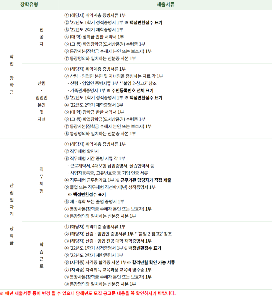 | 대상 | 지원일 기준 대한민국 국적의 산림·임업 학생 |